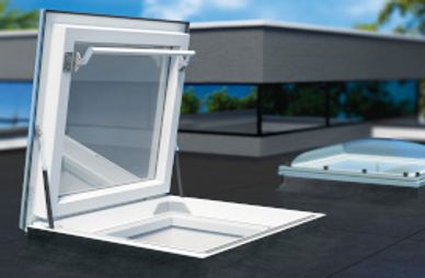 The insulated access roof lights DR_ are new products expanding the range of FAKRO solutions for flat roofs. In addition to illumination function, they have an extra utility feature providing safe and convenient access to the flat roof. Special hinges and functional opening system used in the access roof light ensure easy sash opening up to 80 ° in windows in sizes 90x90 and 100x100, while in sizes 90x120 and 120x120 it opens up to 60 °. Gas springs facilitate operation of the sash and keep it stable in the open position, thus protecting against accidental closing. What is more, access roof lights feature increased safety of use thanks to the application of anti-slip covers on their profiles.